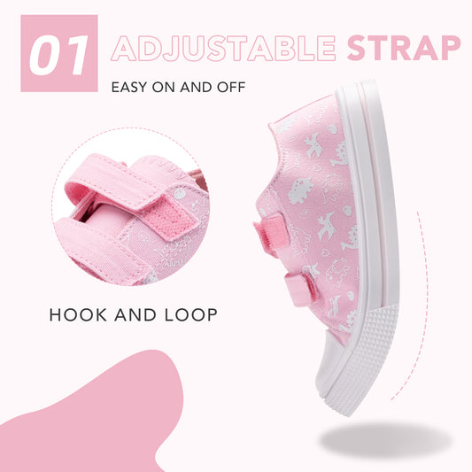 - CONVENIENCE: The construction design of these children canvas shoes is simple but classic with hook and loop, giving little kids the independence to take their own shoes on and off easily
