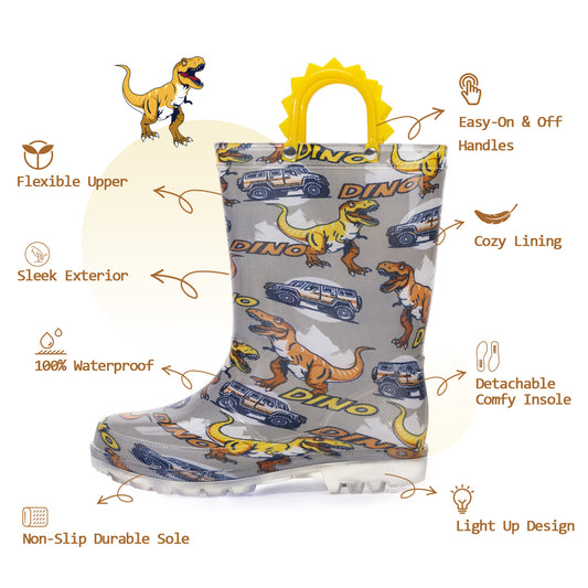 Light Up Boys Fashion Rain Boots with Handles