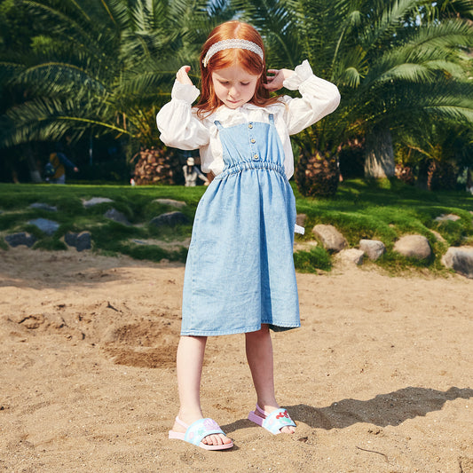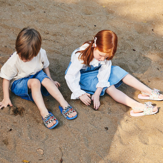 - EASY TO WEAR: Open-toe slip on design and elastic heel strap for easy putting on and taking off. Younger kids can wear the sandals safely and their feet will not fall out of the shoes easily