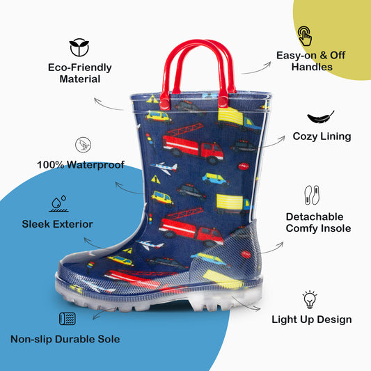 Boys Light Up Rain Boots with Handles