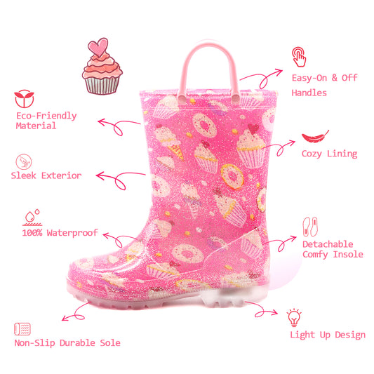 Light Up Toddler Kids Rain Boots with Handles
