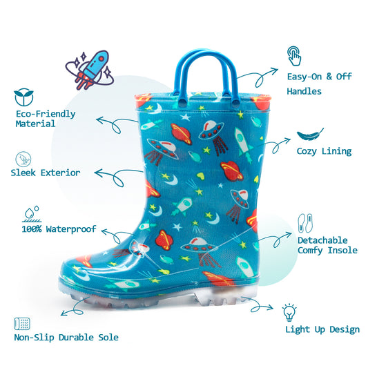 Light Up Kids Rain Boots with Handles