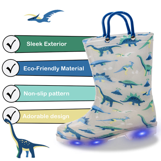 - ✅ Light Up Flashing Design Light Up Kids Rain Boots Blue Dinosaur – Easy to clean and cool both in the dark and outside.