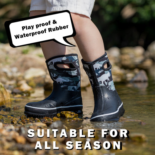 - OUTDOOR CHOICE: Our neoprene boots come in multiple sizes, making them suitable for children of different ages. Whether you're shopping for a toddler or an older child, these mud boots will fit perfectly, providing the protection and comfort they need for outdoor play
