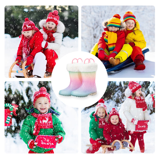 - √ Easy on Handles Design, toddlers can easily wear on and off the Girls Winter Fleeced Rain Boots on their own without any hassle.