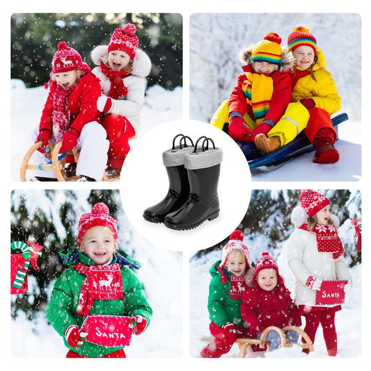 - √ Easy on Handles Design, toddlers can easily wear on and off the Kids Winter Fleeced Rain Boots on their own without any hassle.